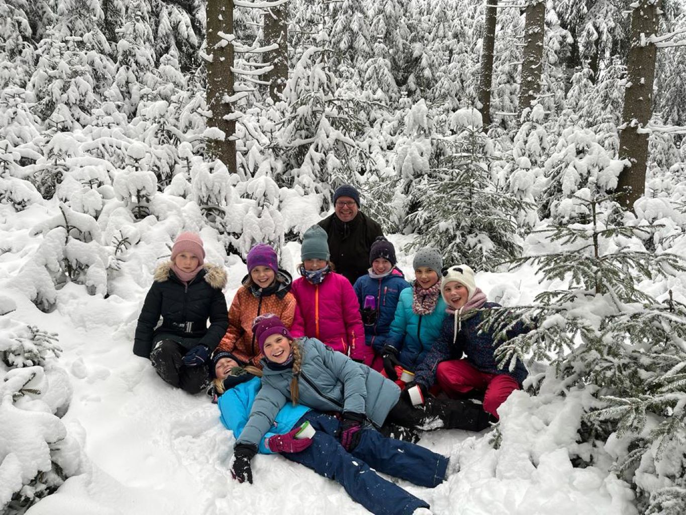 Die Kids der Klassen 5b und 5e hatten Spaß - ob nun beim Geocaching im Wald, bei einer lehrreichen Wanderung durch den tiefverschneiten Forst,