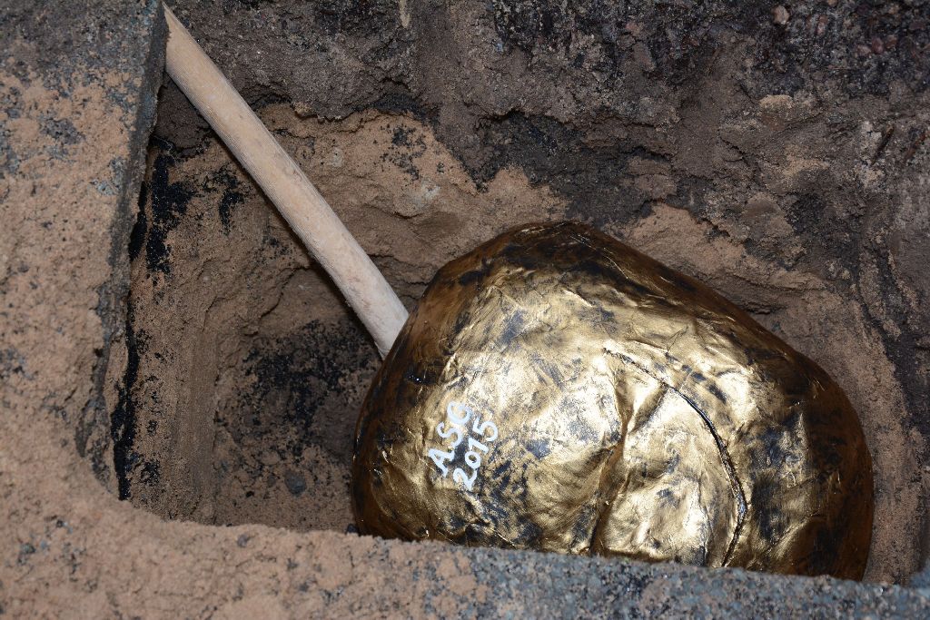 Danach wurde die goldene Zeitkapsel mit den Botschaften unserer Klassen im Atrium dem Erdreich übergeben, wo sie nun die nächsten 50 Jahre ruht.