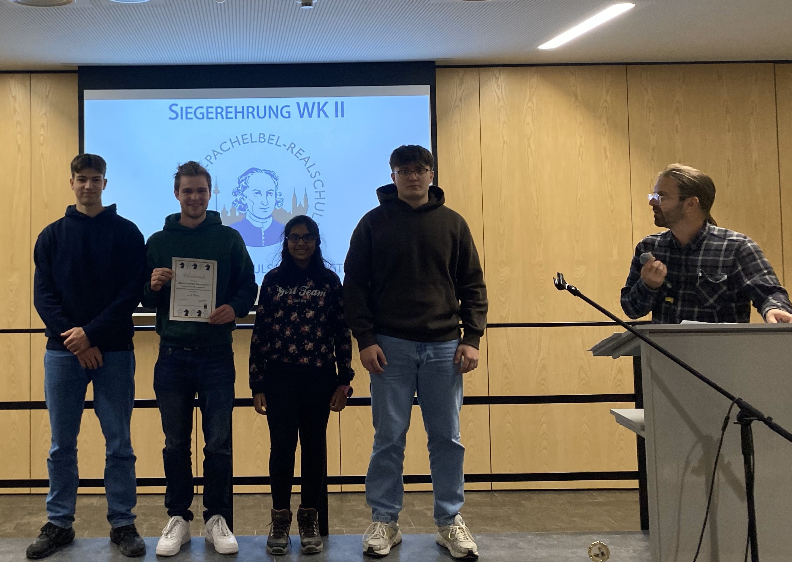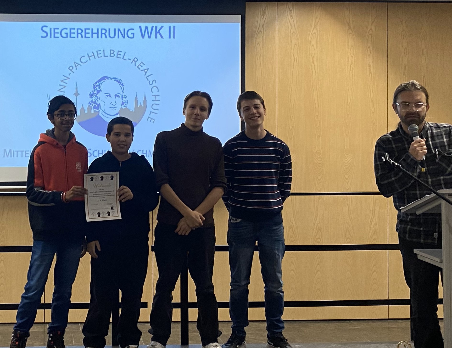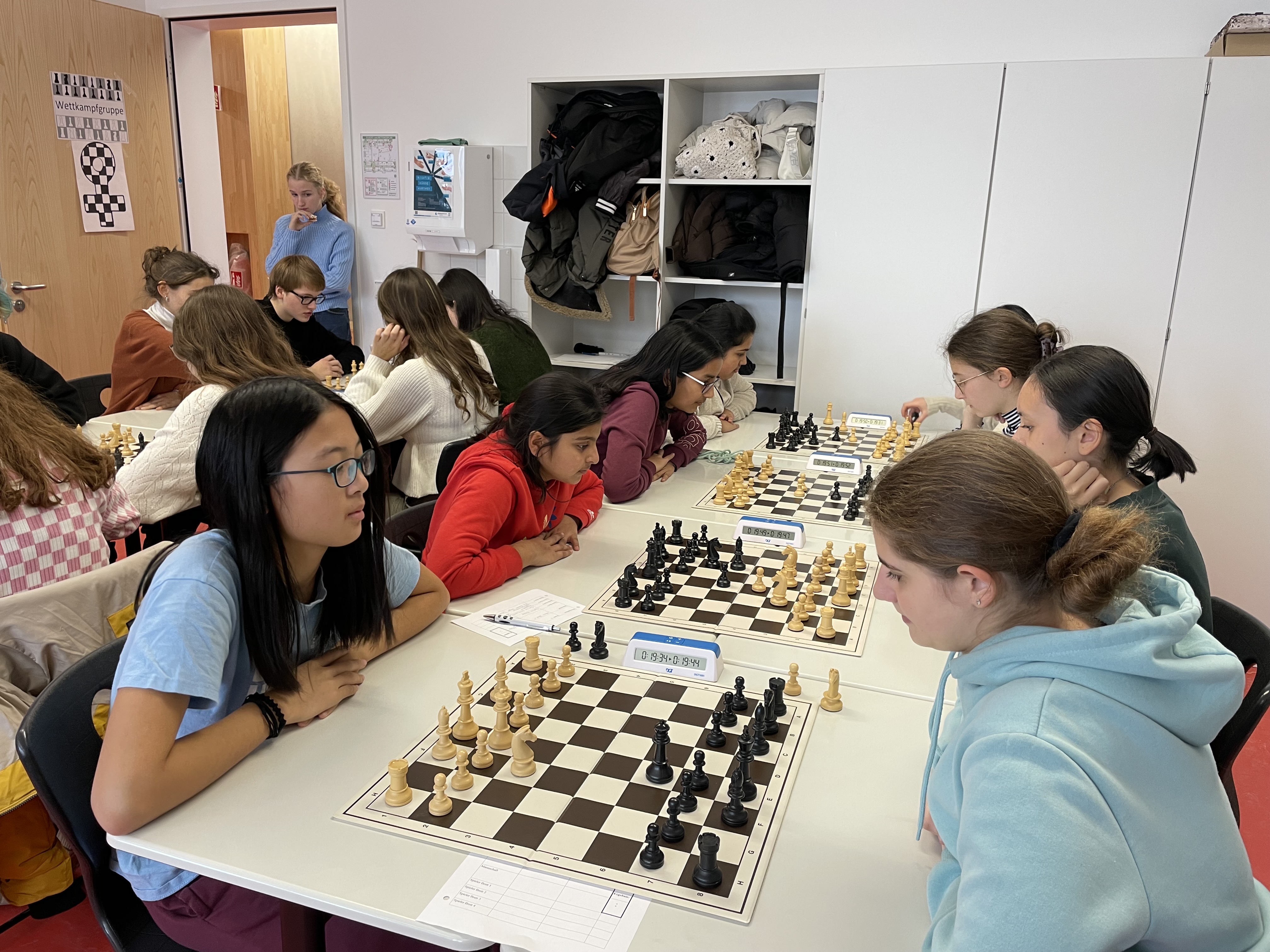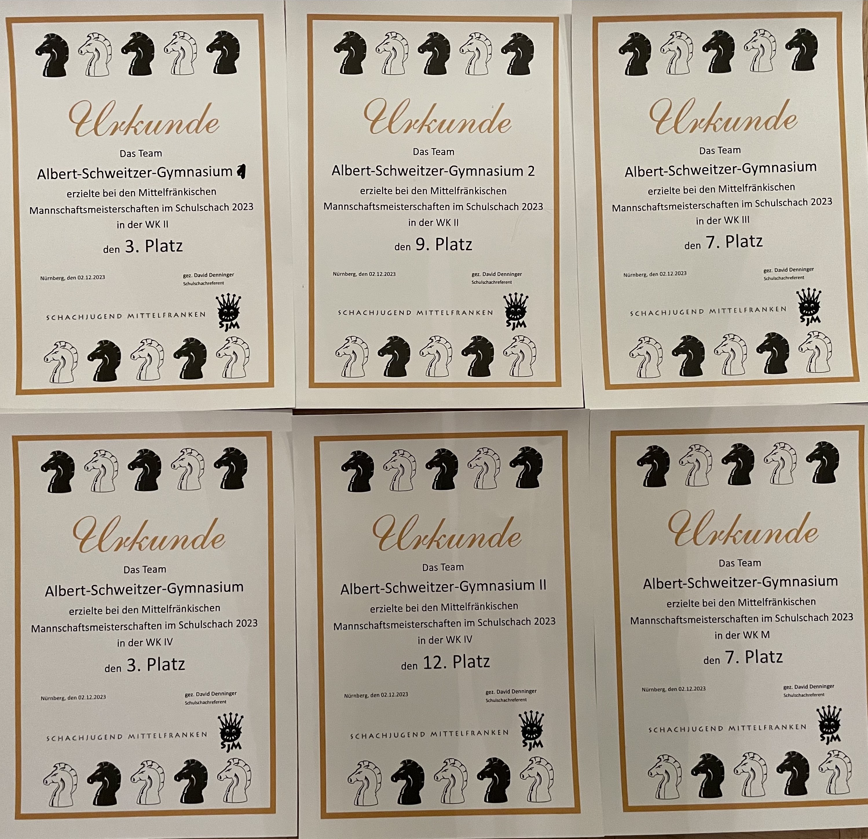 Am Samstag, 02.12.23 fanden in Nürnberg die mittelfränkischen Meisterschaften im Schulschach statt. Nach einer sehr spannenden Anreise (die geplanten S-Bahnen um 8.19 bzw. 8.42 fielen überraschenderweise aus, sodass wir auf Bus, Tram und U-Bahn zurückgreifen mussten) wurden wir freudestrahlend empfangen, weil wir die Schule mit den meisten Teilnehmerinnen und Teilnehmern (27) und immerhin sechs Mannschaften waren. Besonders erfreulich ist, dass wir in diesem Jahr auch zum ersten Mal eine Mädchen-Mannschaft melden konnten. Sie waren zwar mit Abstand die jüngsten Teilnehmerinnen, schlugen sich jedoch mit ihrem 7. Platz sehr wacker.