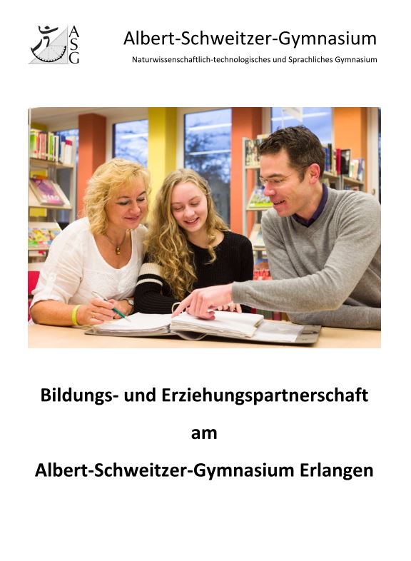 Die Stiftung Bildungspakt Bayern hat Leitlinien zur Zusammenarbeit zwischen Schule und Elternhaus erarbeitet. In Anlehnung an diese Leitlinien haben wir das ASG-Programm zusammengestellt. Ein Klick aufs jeweilige Bild öffnet die zugehörige PDF-Datei (28 Seiten bzw. 14 Seiten).