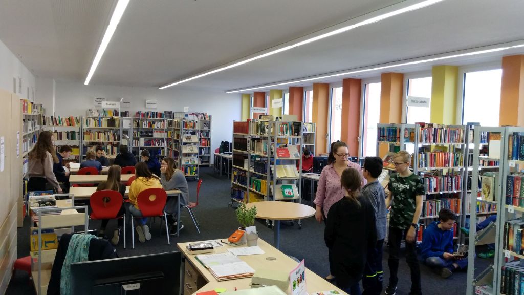 Unsere Bibliothek befindet sich in B102 und lädt mit ihrer freundlichen Möblierung und angenehmen Atmosphäre zum Aufenthalt ein. Sie verfügt über acht PC-Arbeitsplätze und bietet eine gemütliche Schmöker-Ecke.