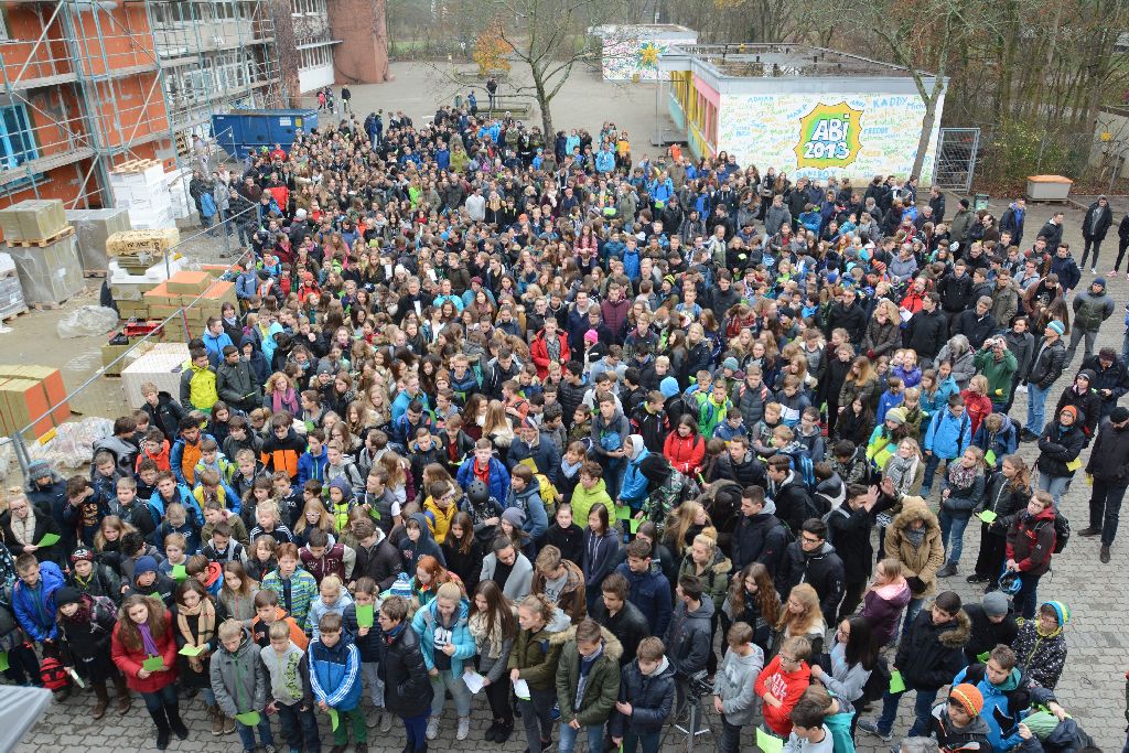 Ein schönes Bild von der um 12 Uhr im Pausenhof mitsamt ihrer Baustelle versammelten Schülerschaft findet sich in einem locker-lebendig verfassten Artikel der Erlanger Nachrichten vom 28.11.2015 popup: yes.