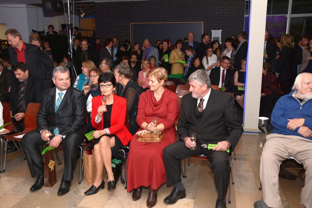 Je später der Abend ... Nach einem Sektempfang zu den Klängen unserer Big Band begrüßte Schulleiter Zwick die Gäste, unter Ihnen der aktuelle und der ehemalige Schulleiter unserer Partnerschule in Partizánske, Vladimir Karásek und Tibor Csollár. Frau Lender-Cassens (Bürgermeisterin), Frau Pfister (Stadträtin und Vorsitzende des Schulausschusses), Herr Beck (Elternbeiratsvorsitzender), Herr Fischer (Vorsitzender des Freundeskreises) und unsere Schülersprecher Denise Čonka, Christian Konnerth und Ben Führer sprachen Grußworte. Herr Ulrich Hahn (Abiturient 1979) und Herr Christian Satzinger (1976) sorgten für deren musikalische Umrahmung.