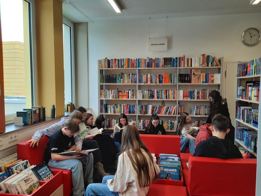 Unsere Bibliothek ist außerordentlich gut sortiert. So findet sich für die Unter- und Mittelstufe eine sehr große Auswahl an Jugendliteratur und altersgerechten Sachbüchern und Zeitschriften zum Lesen und Ausleihen.